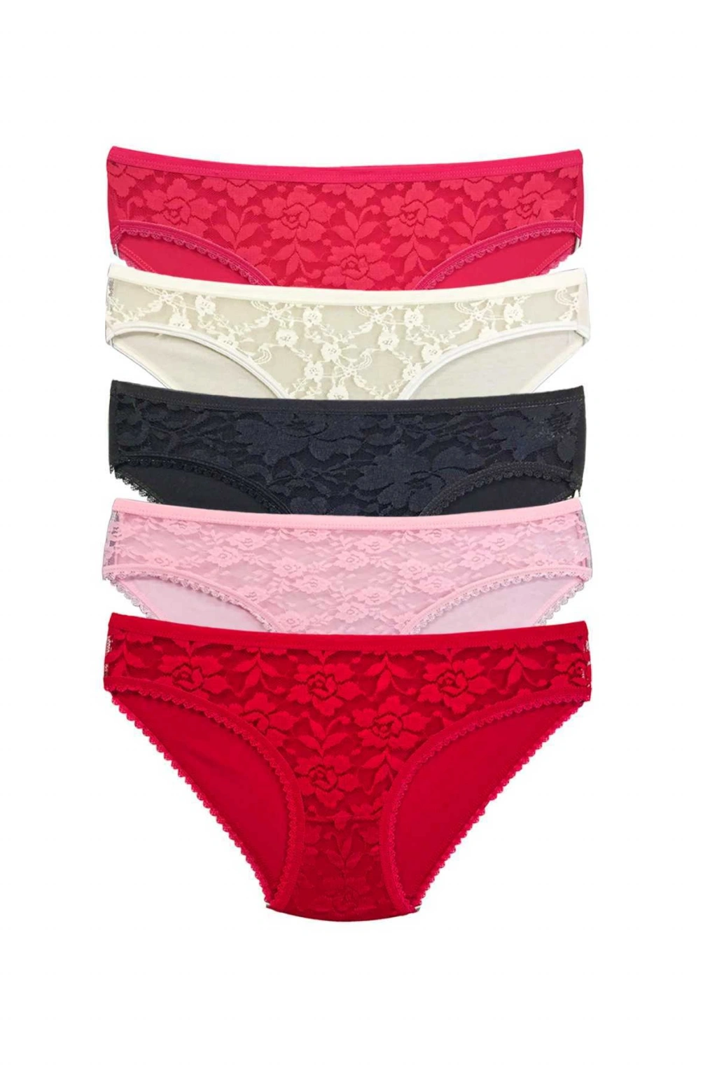 5 Adet Önü Dantelli Transparan Kadın Slip Külot S59