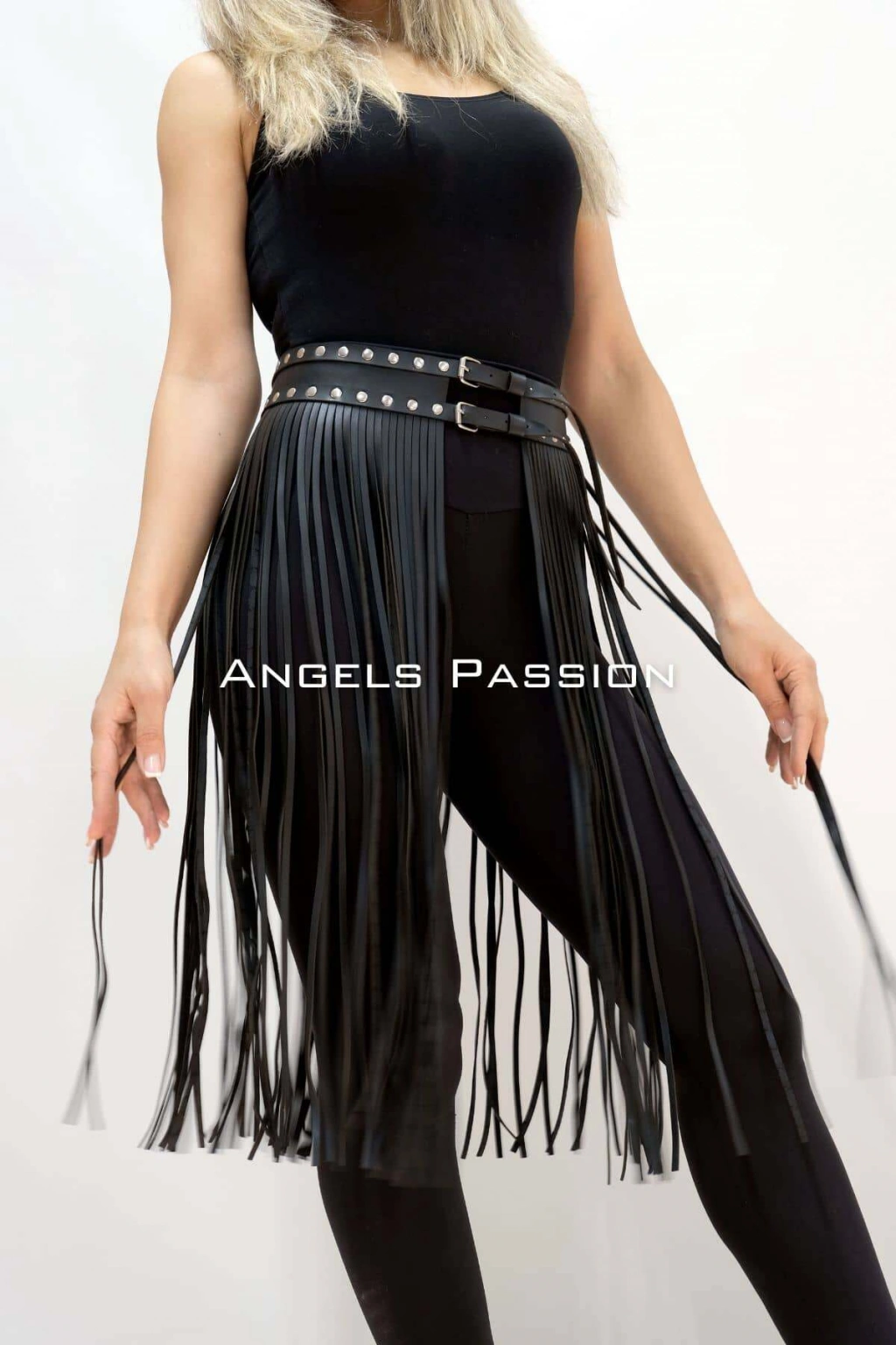 Deri Püsküllü Etek, İnce Püsküllü Boy Etek, Şık Deri Etek Harness - Brf1088