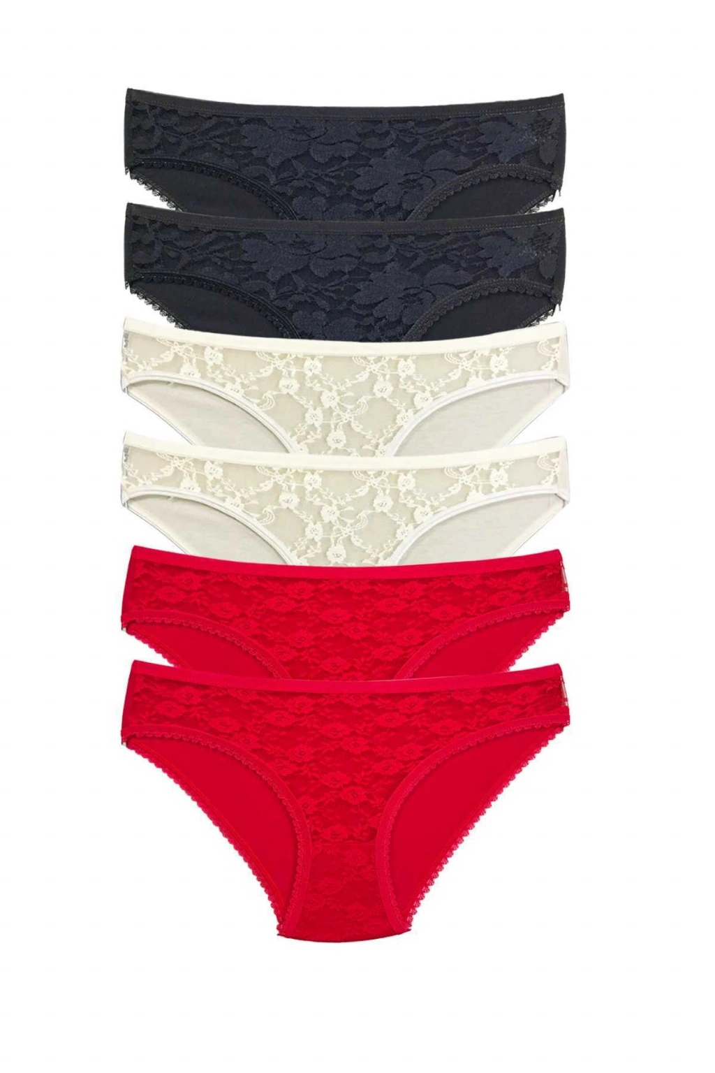 6 Adet Önü Dantelli Transparan Kadın Slip Külot S116