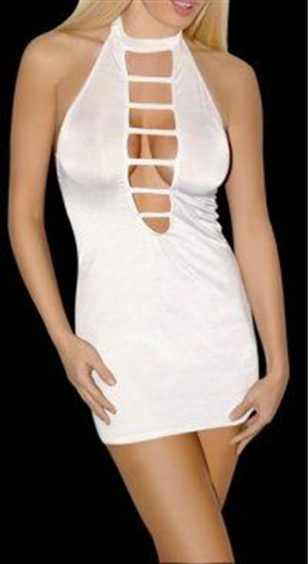 Beyaz Yırtmaç Detaylı Fantezi Mini Club Elbisesi