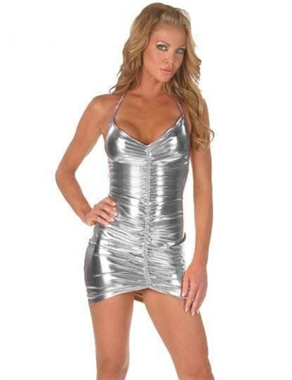 Özel Tasarım Gümüş Işıltılı Sırt Dekolteli Fantezi Mini Club Elbisesi