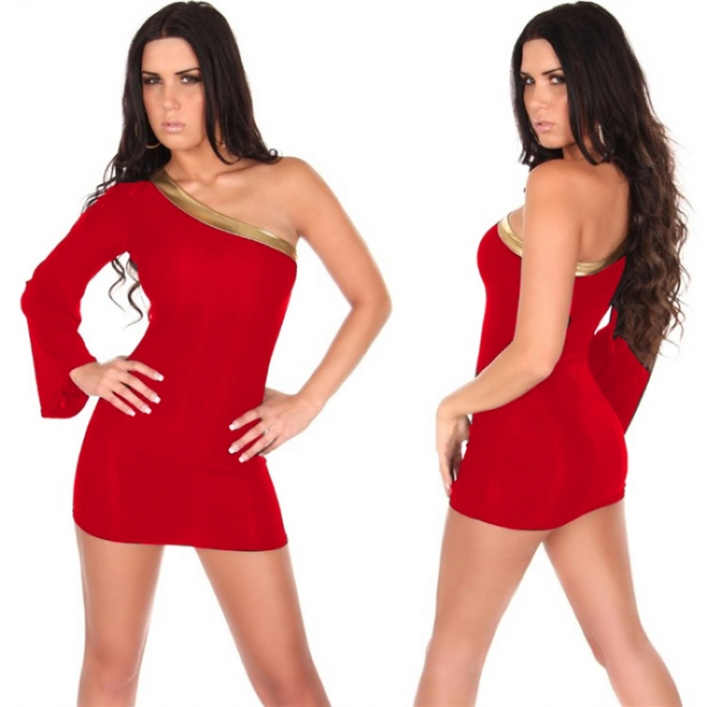 Kırmızı Parlak Lame Fantezi Deri Elbise