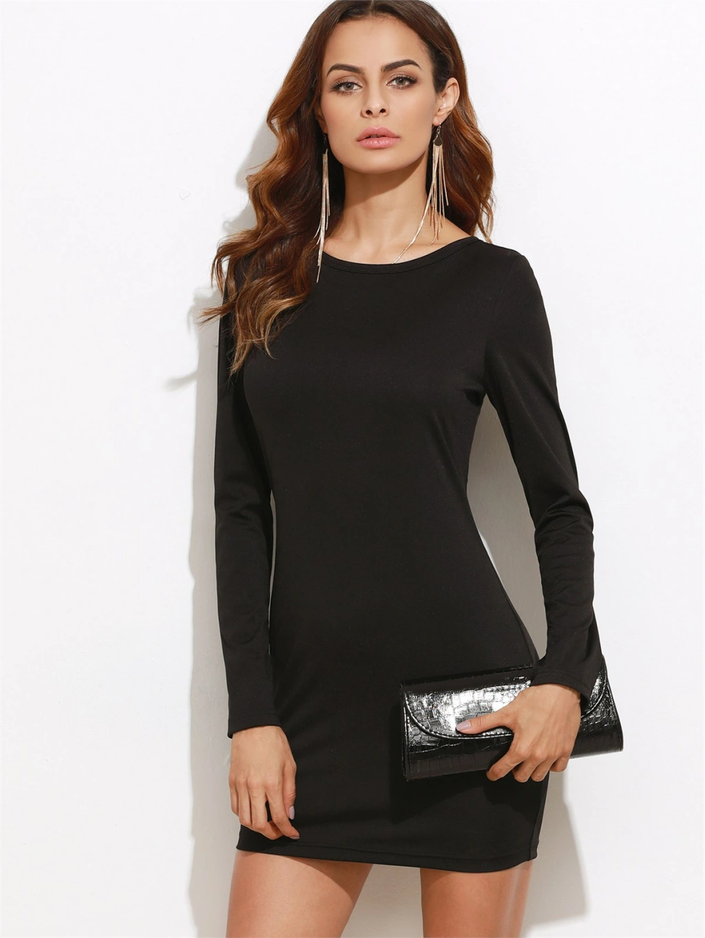 Beruflic B101321 Sırt Dekolteli Uzun Kollu Mini Elbise