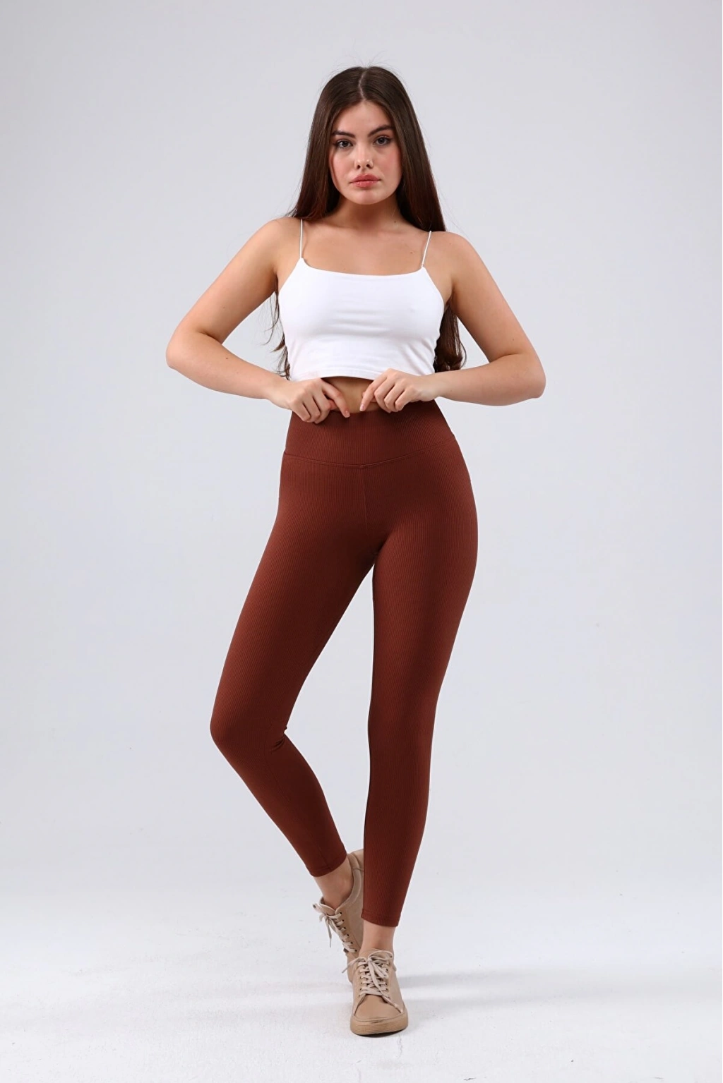 Kahve Mı Emay 3921 Soft Seamless Ripli Tayt Yoga Takımı