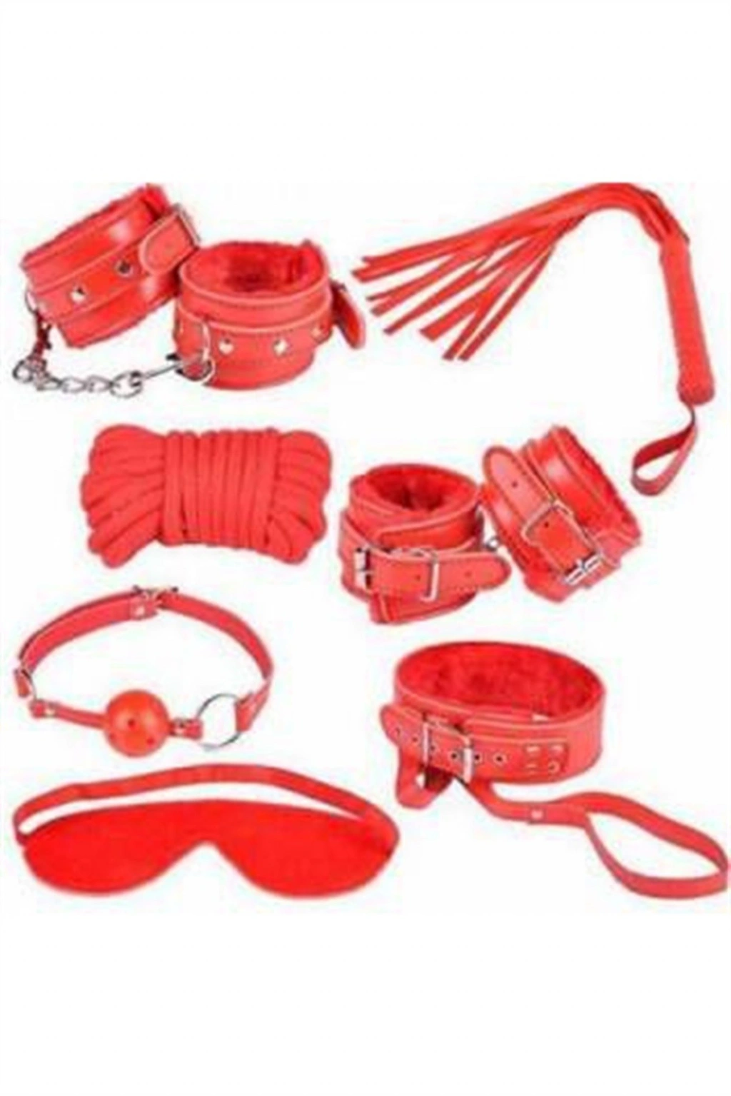 Kırmızı Fantezi Kelepçeli Harness Göz Bantlı Set