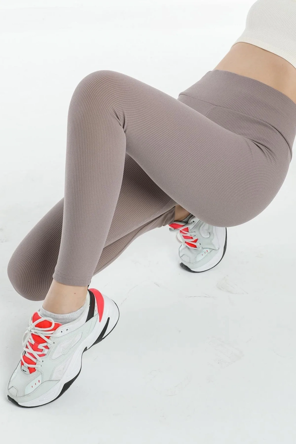 Kahve Mı Emay 3921 Soft Seamless Ripli Tayt Yoga Takımı