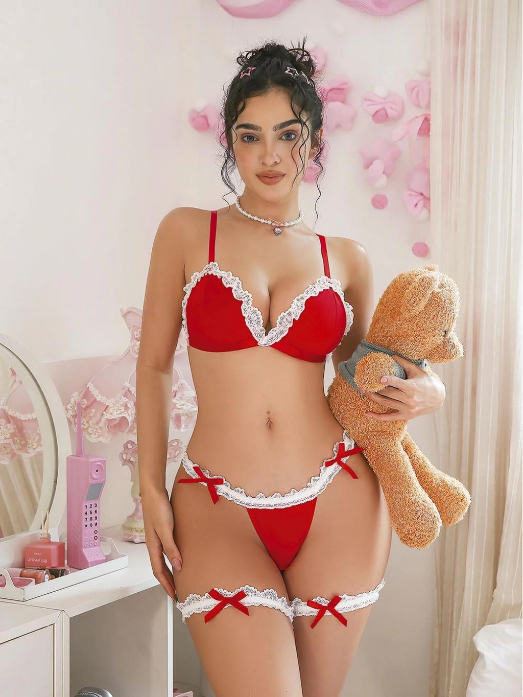 Kırmızı Dantelli Fantazi Sütyen ve G-String Takım TM2048