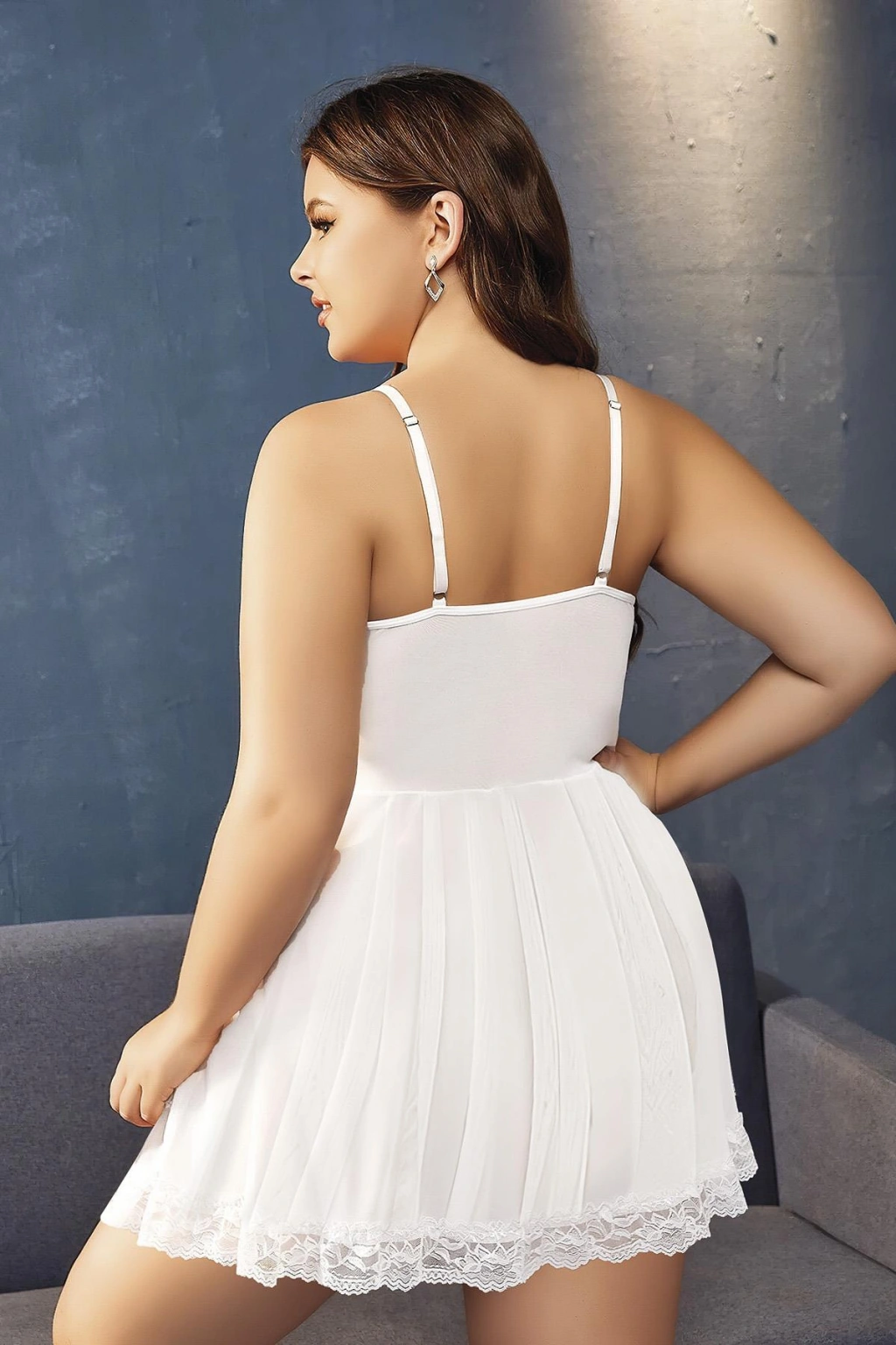 Büyük Beden Beyaz Dantel İşlemeli İnce Askılı Gecelik