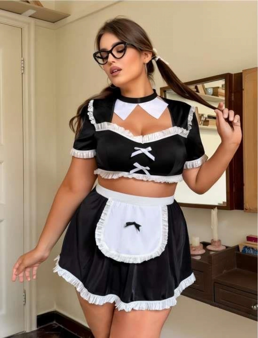 Büyük Beden Mini Etekli Büstiyerli Fantezi Hizmetçi Kostümü