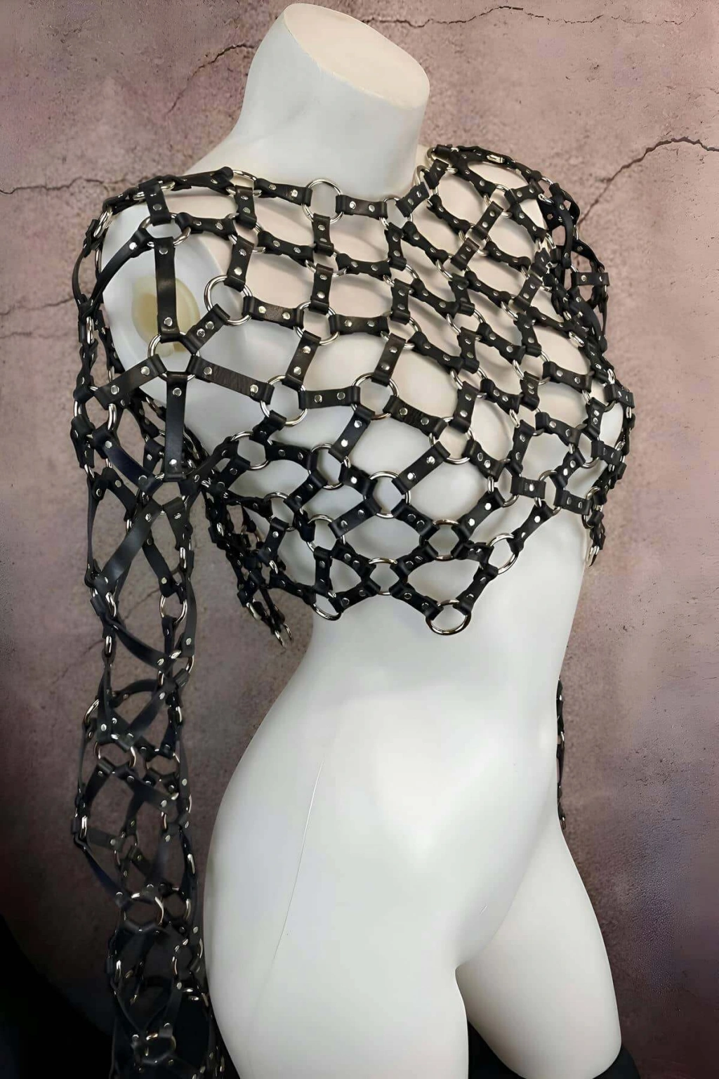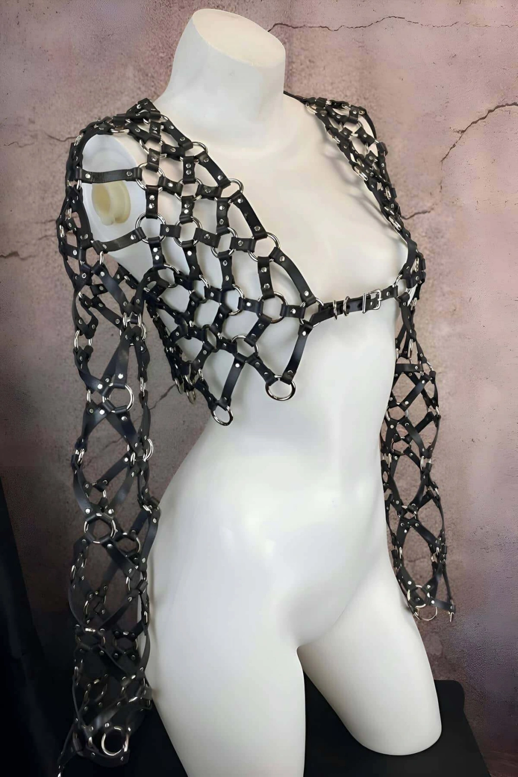 Çapraz Tasarım Uzun Kollu Deri Crop Bağlamalı Büstiyer Harness- Brf1076