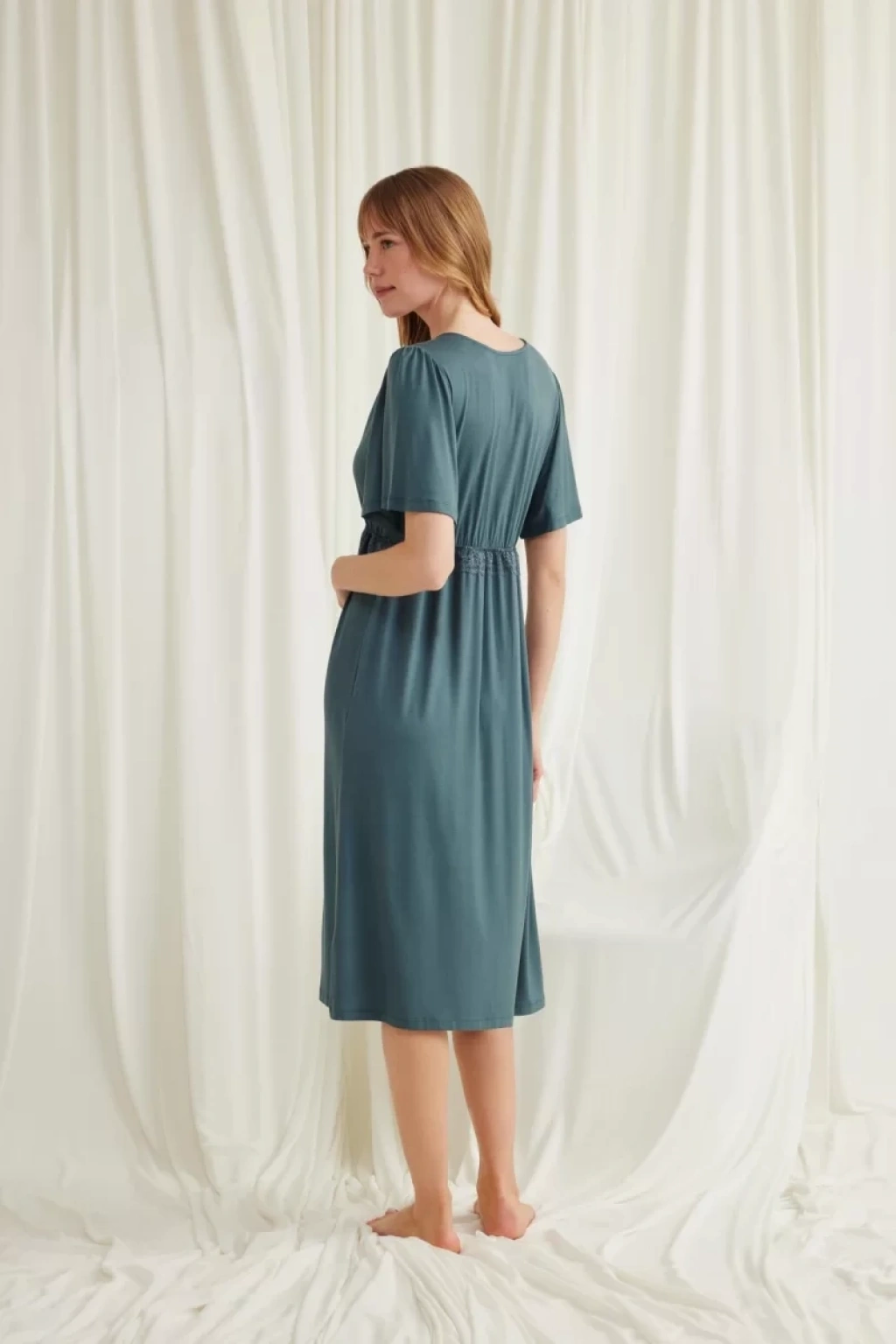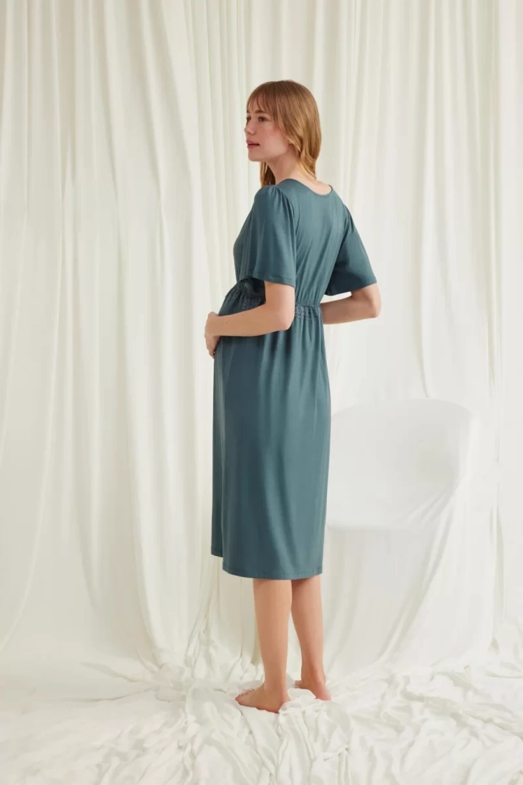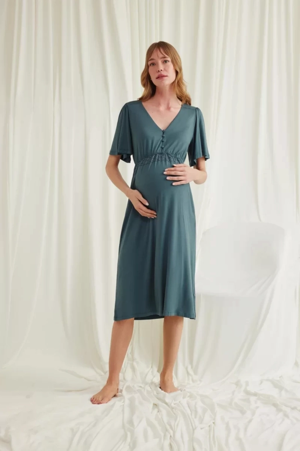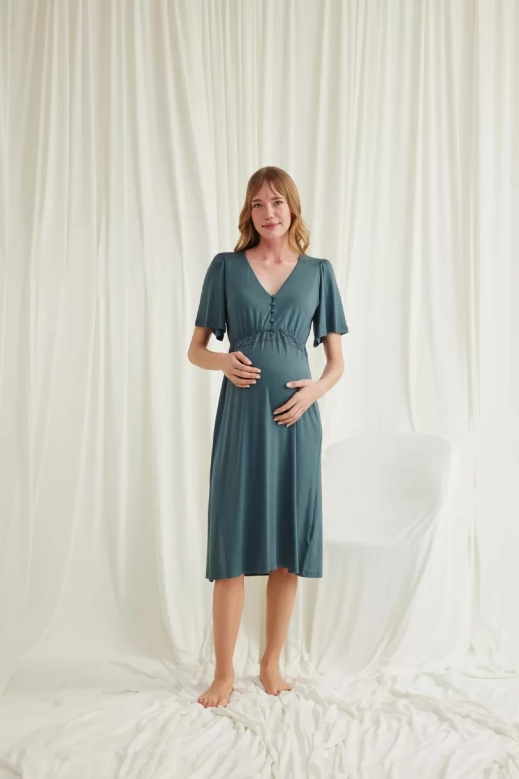 Dantelli Önü Düğmeli Hamile Lohusa Viskon Gecelik