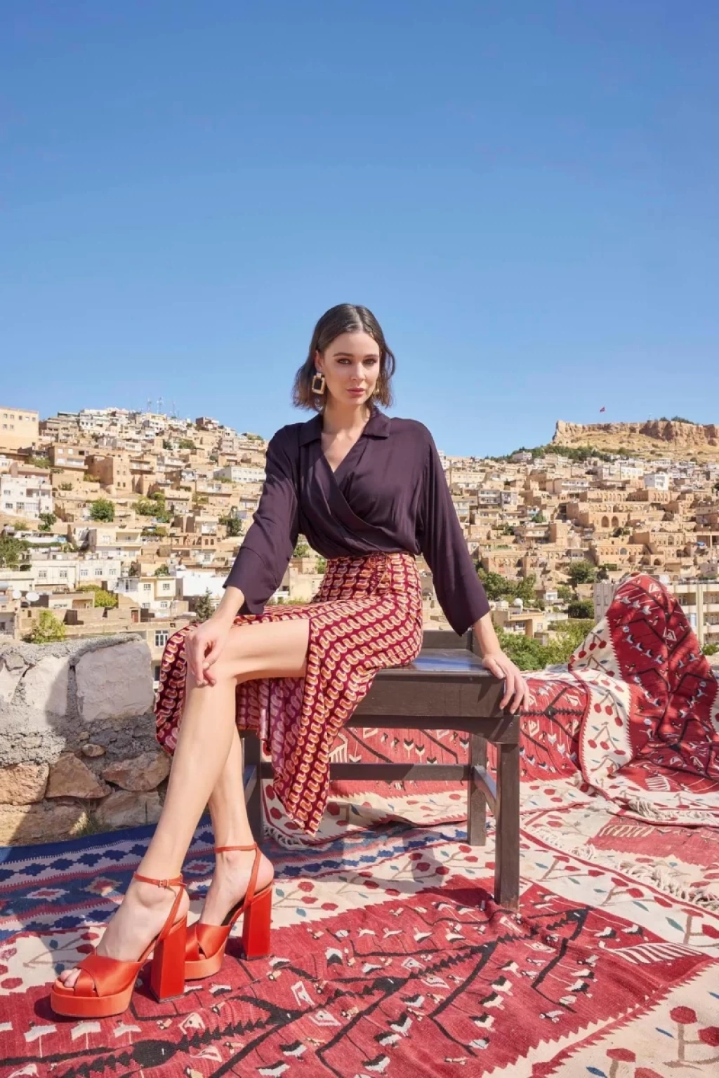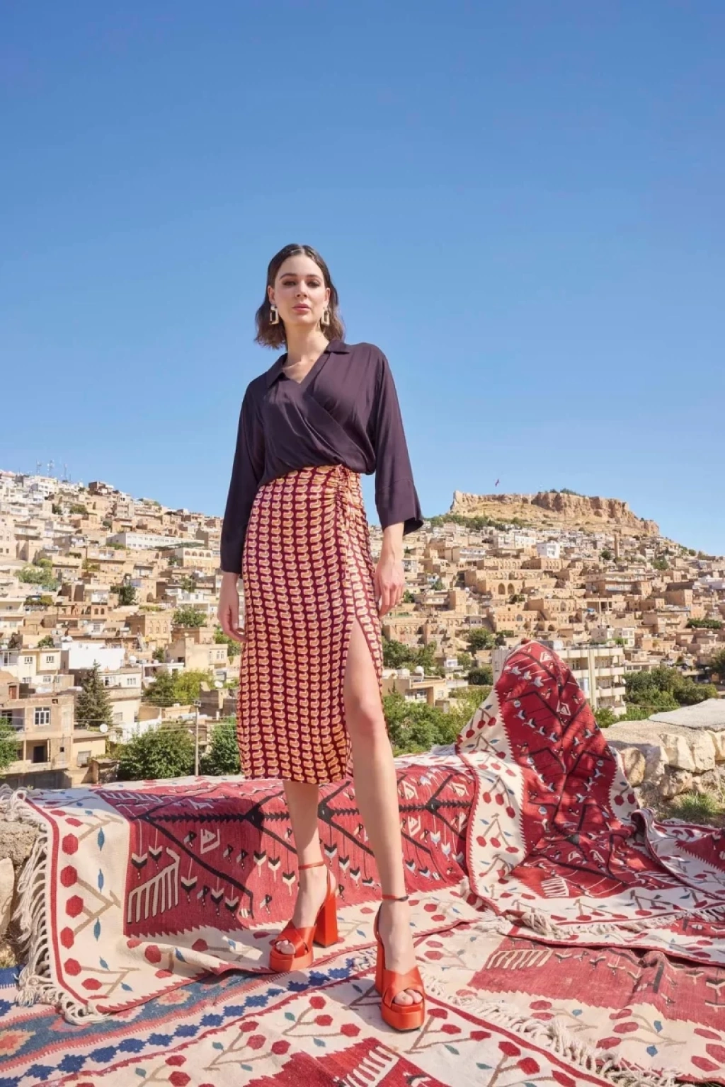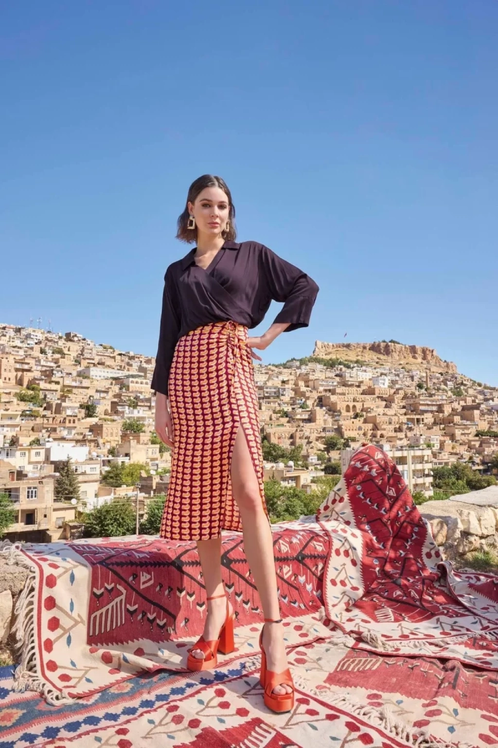 Etnik Desenli Saten Etek Takımı