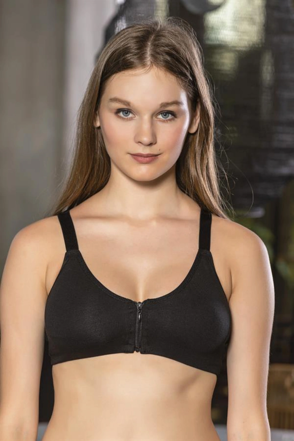 Fermuarlı Pamuklu Sporcu Sütyeni Siyah (brf1061)