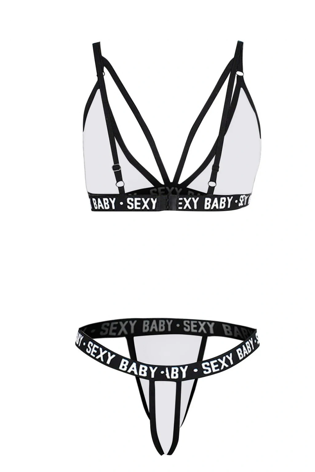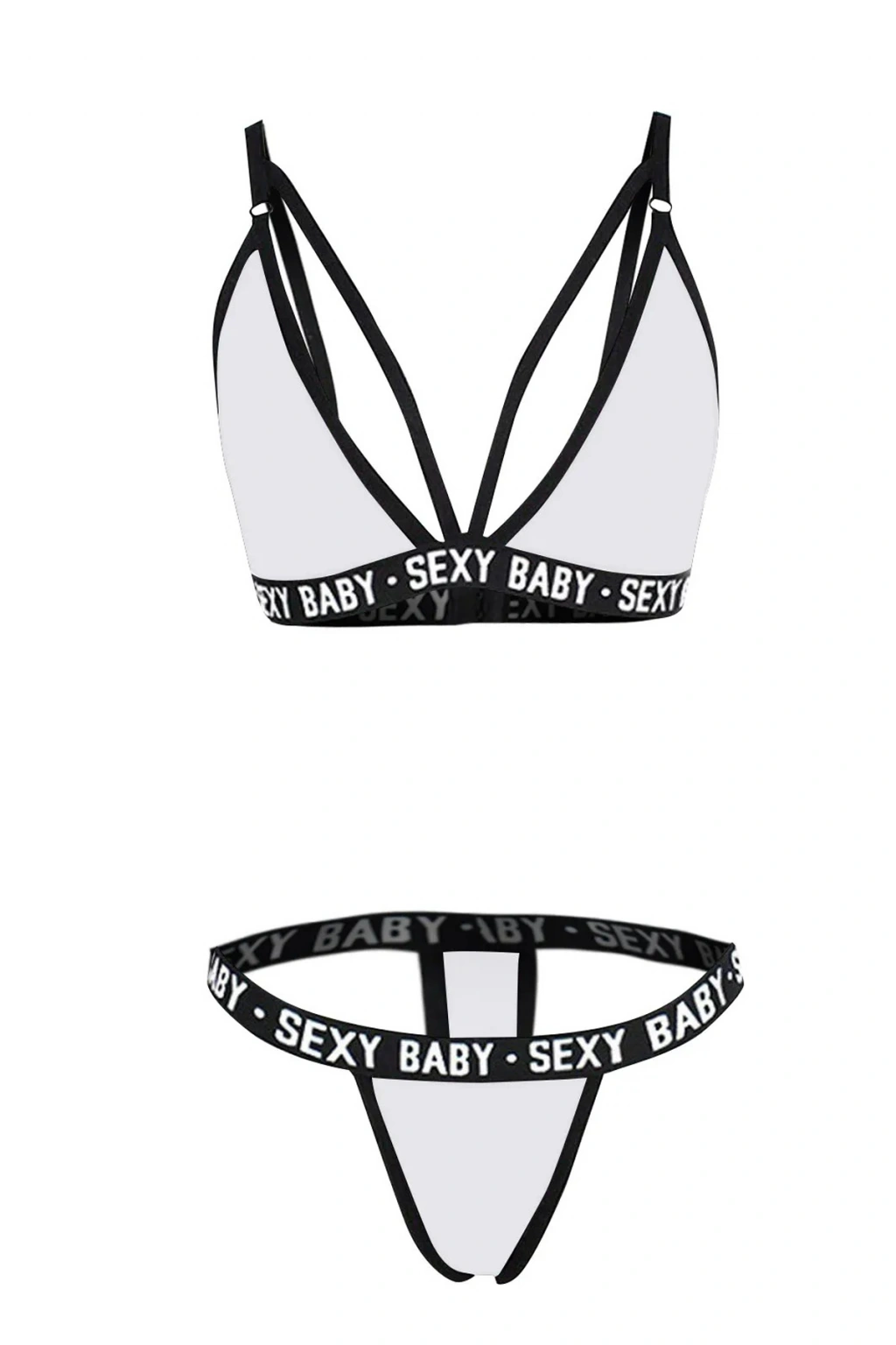 Kadın Beyaz Yazı Detaylı Ipli Sütyen Takımı