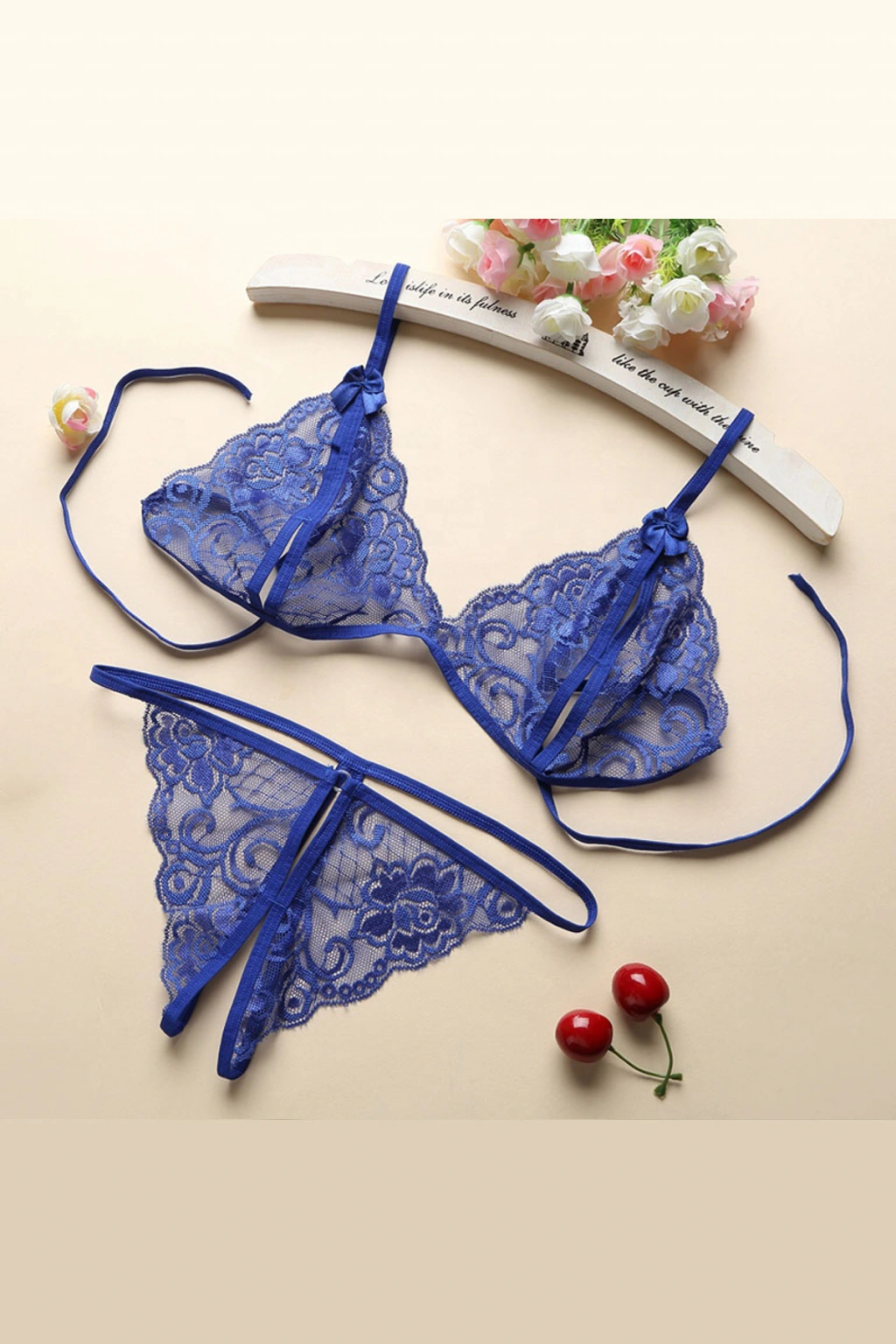 Kadın Mavi Dantelli Sütyen Külot Takımı
