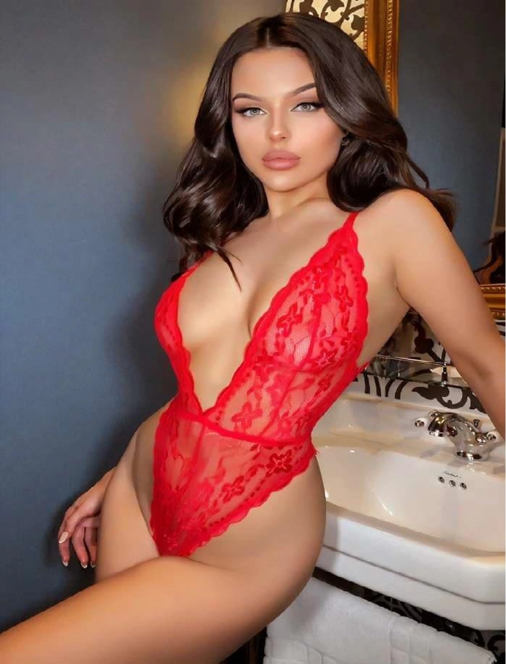 Kırmızı Dekolteli Dantelli Fantezi Askılı Babydoll