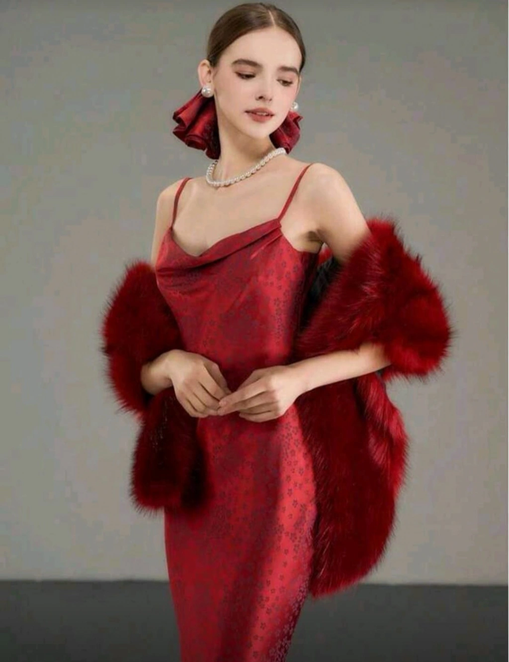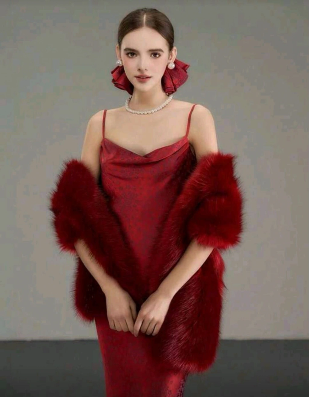 Kürk Orijinal Kırmızı Seksi Omuzluk Şık Kürk