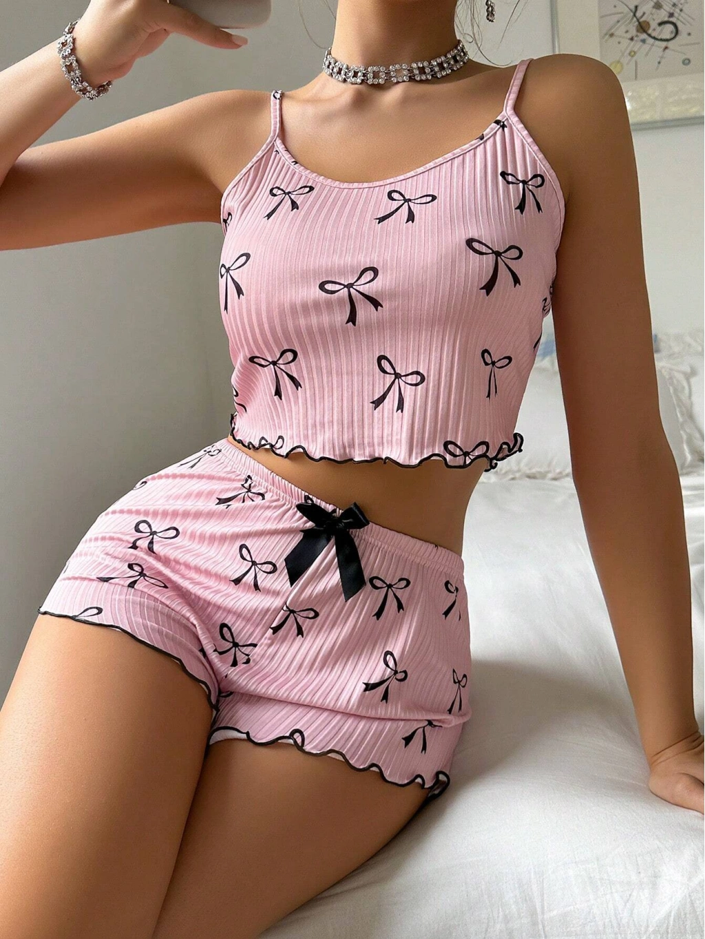 Pembe Fiyonklu Askılı Şortlu Kadın Pijama Takımı, Yumuşak Kumaş, Şık Detaylar,yazlık Kadın Pijama