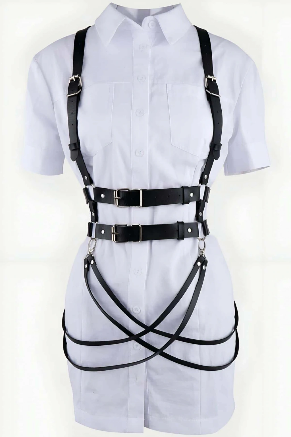 Kadın Siyah Aksesuar Ve Yırtmaç Detaylı Boyundan Bağlamalı Şık Elbise Gecelik