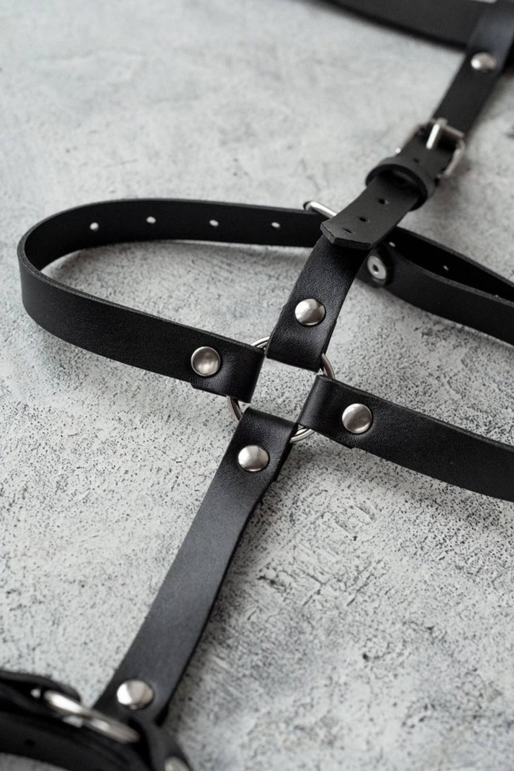 Siyah Deri Jartiyer Fantazi Harness 1007