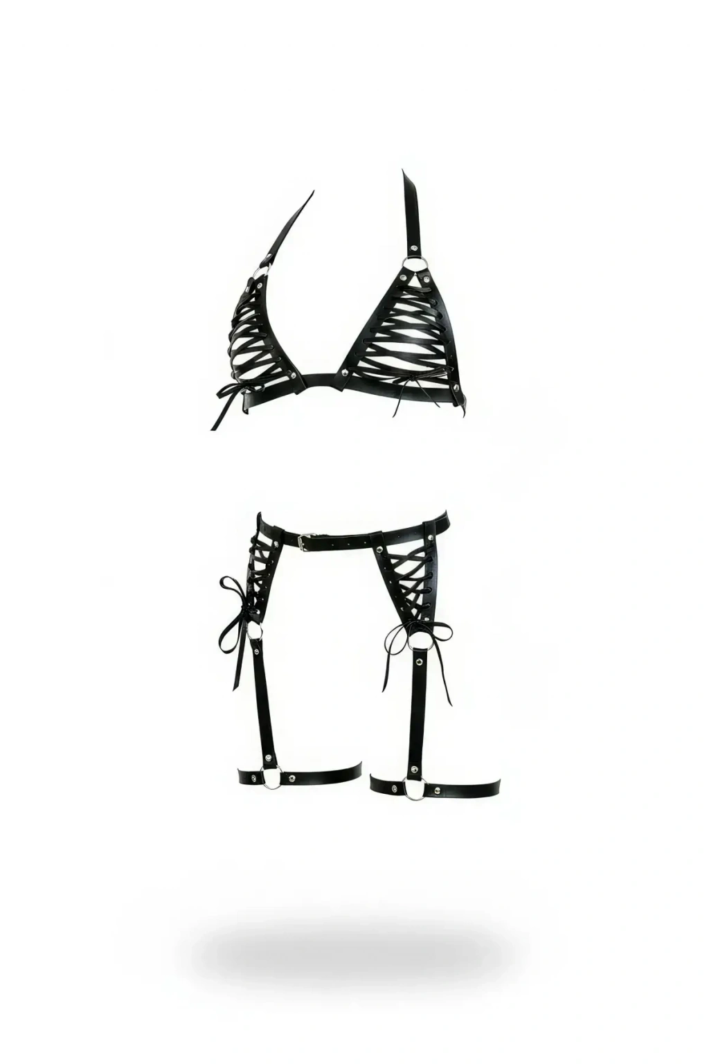 Siyah Harness Takım Çapraz Bağlamalı Suni Deri - Brf1389