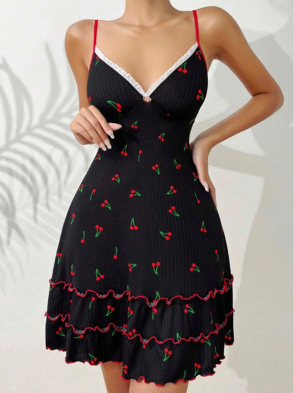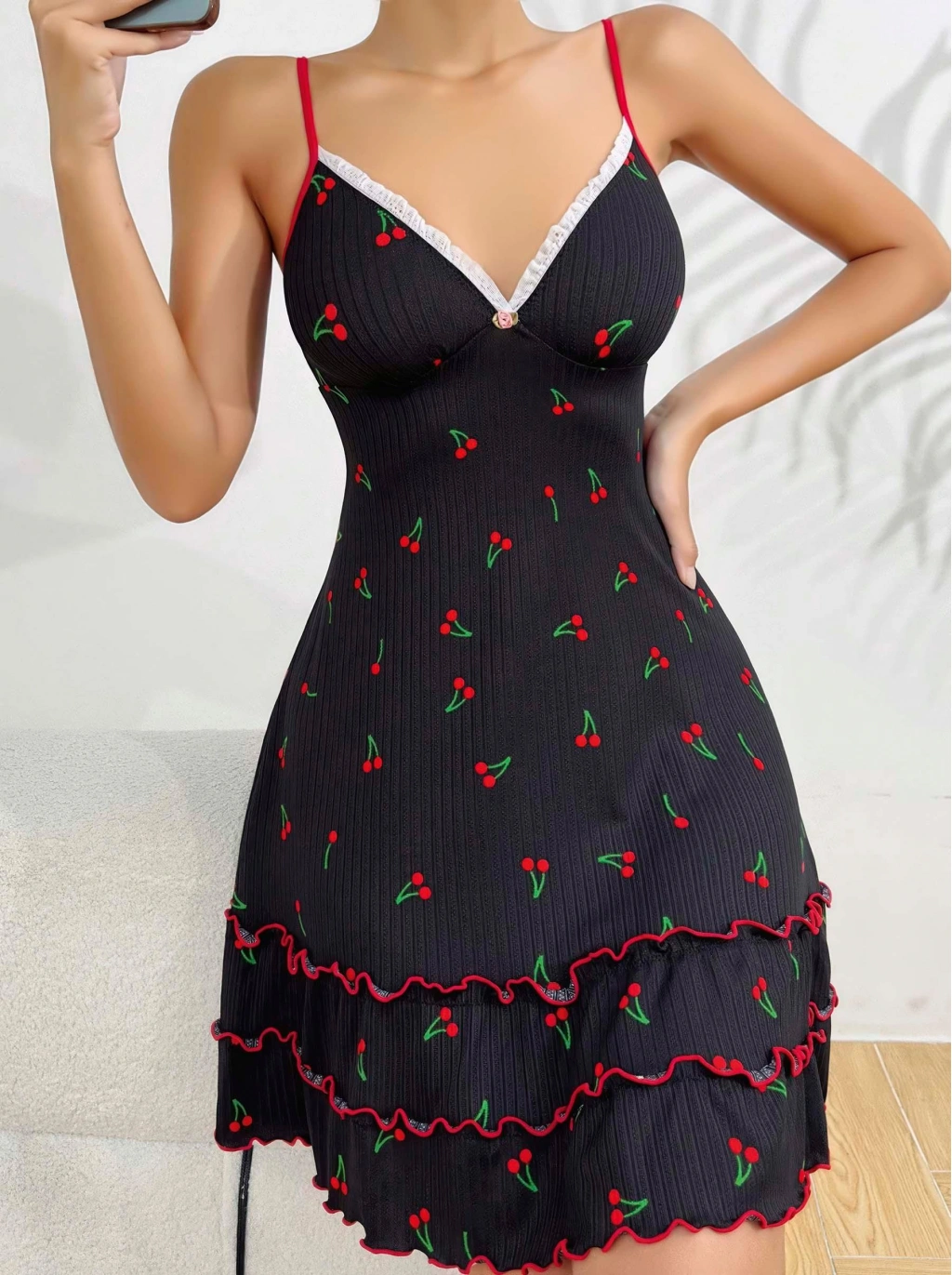 Siyah Kiraz Baskılı Akılı Gecelik 5110
