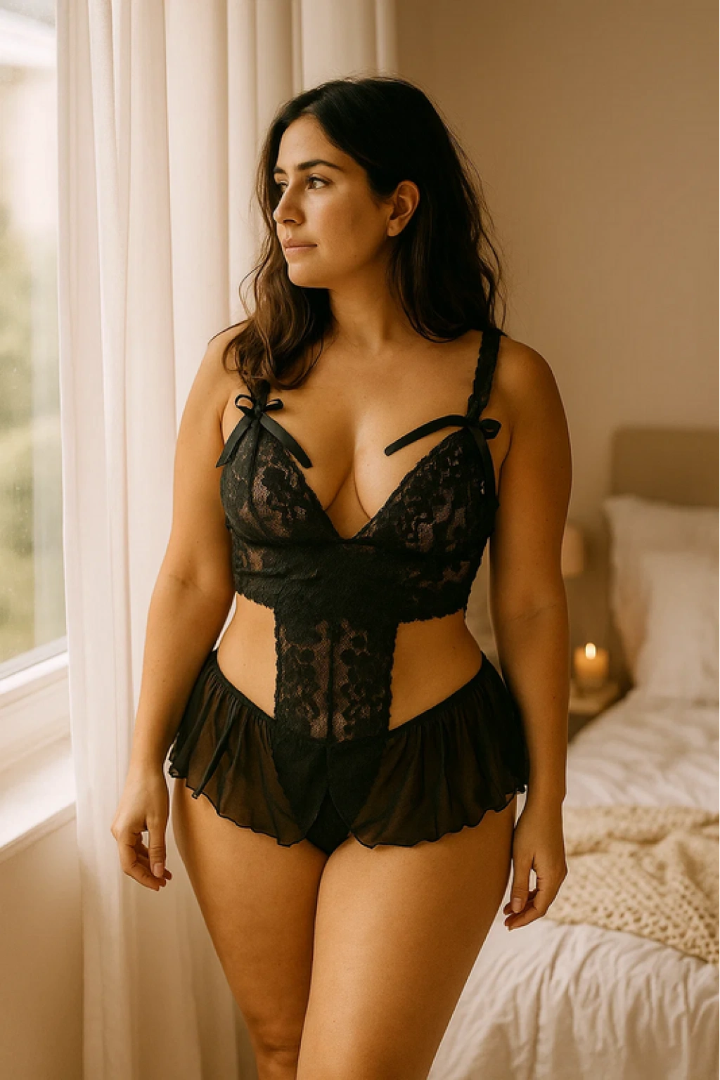 Dantelli Jartiyer String Ve Çorap 3'lü Takım
