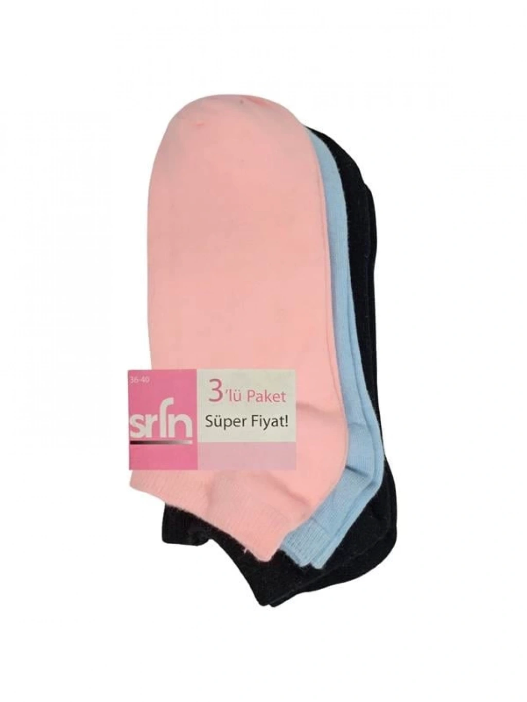 Srfn Kadın Patik Çorap 3 Lü Düz Renkli