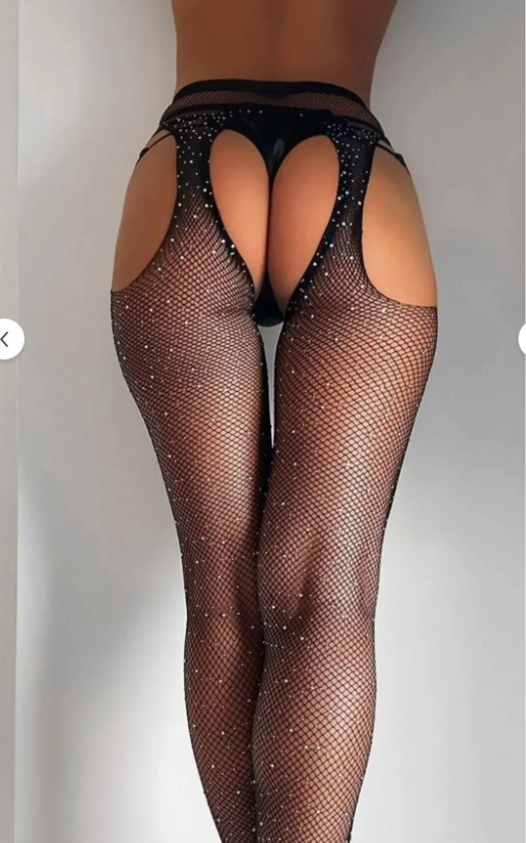 Taşlı Ağ Kısmı Açık Vücut Çorabı