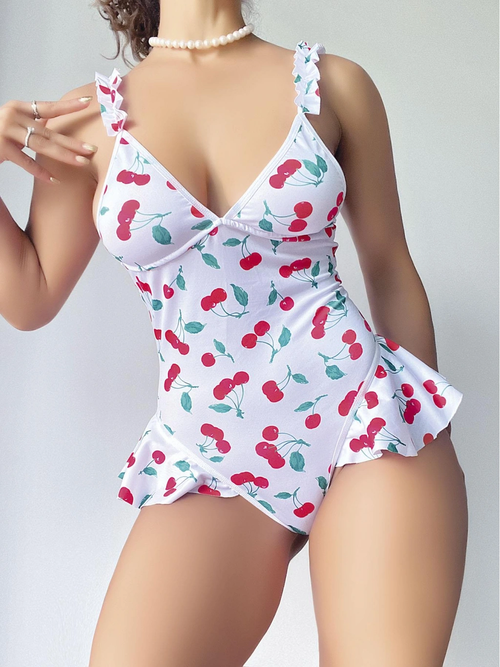 Beruflic Kırmızı Jakarlı Bodysuit Gecelik