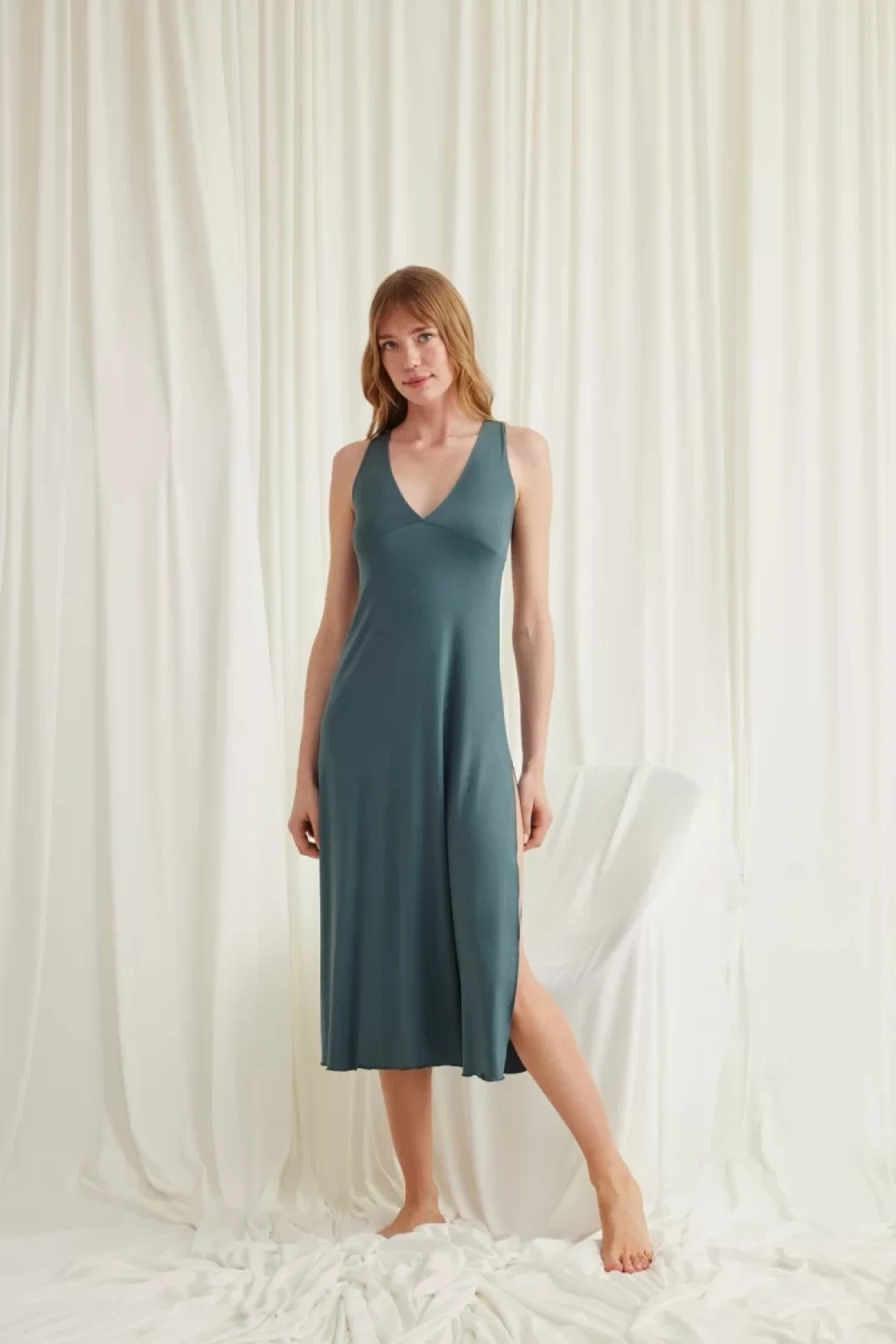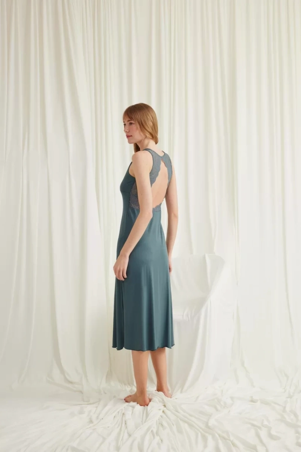 Yakası Ve Sırtı Dekolteli Dantelli Yırtmaçlı Gecelik