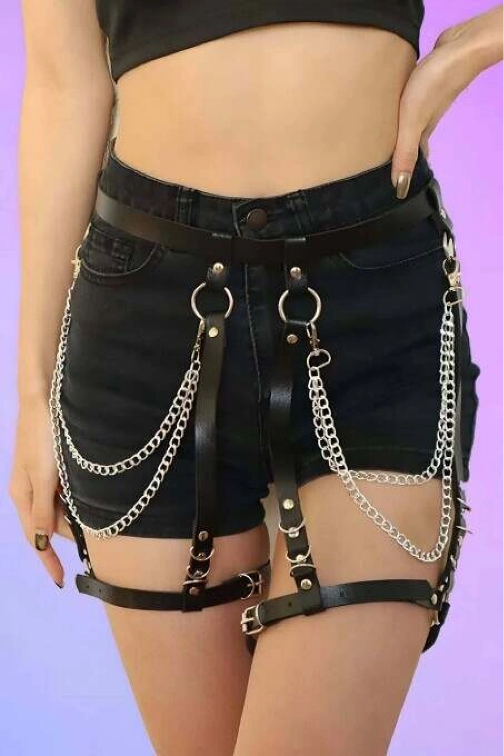 Kadın Siyah Aksesuar Ve Yırtmaç Detaylı Boyundan Bağlamalı Şık Elbise Gecelik
